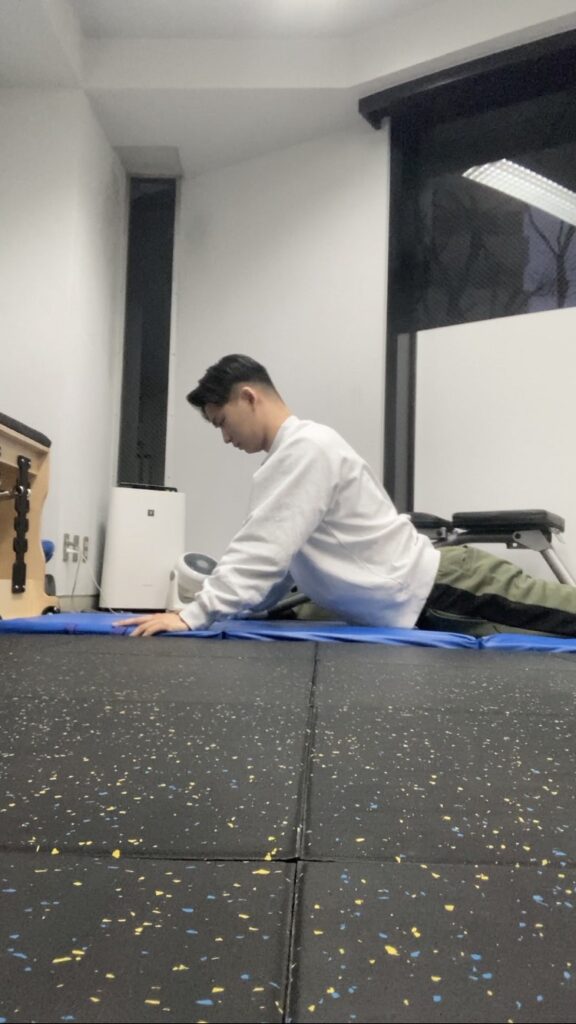 なのでしっかりまずはお腹の筋群が働くように、コントロールできるようにしておかないと反る動きは困難になります。